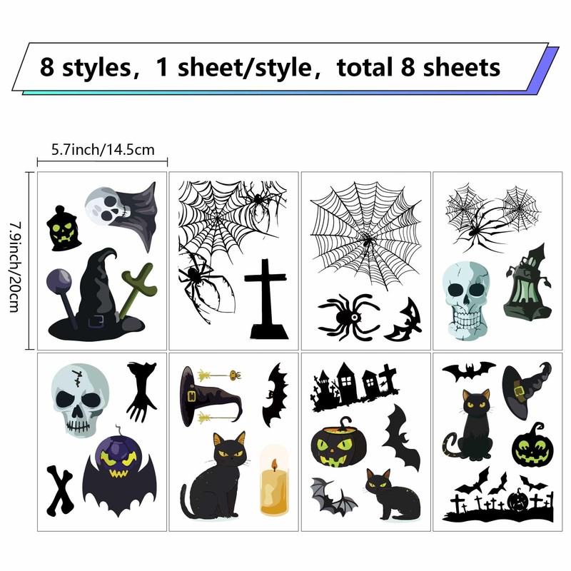 - 8 Sheets Window Clings: 8 sheets in 8 styles window clings, meet daily or special using needs, each pattern element can be arranged freely, each sheet is approx 7.87 x 5.71 inch(20x14.5cm).