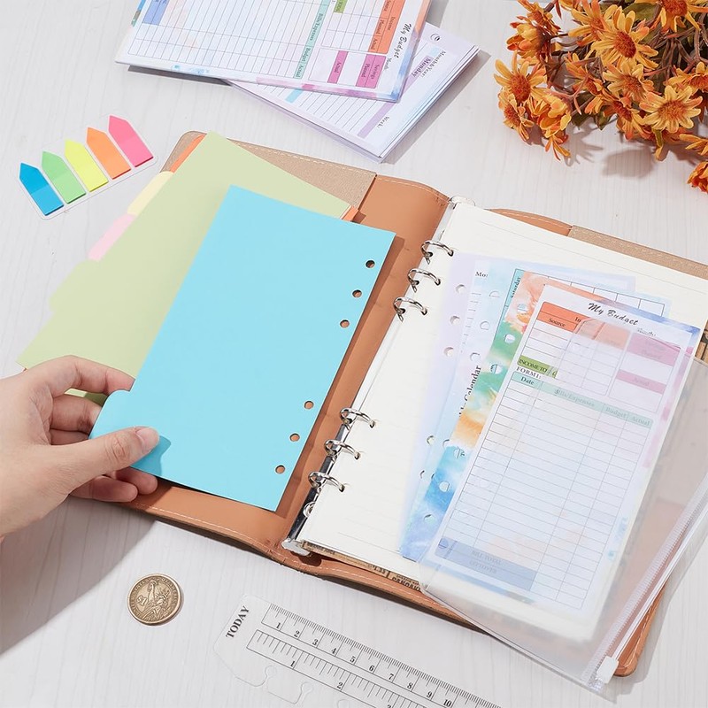 - WHAT YOU CAN GET: Stay organized and in control of your finances with our a6 budget planner refill set, including 82 sheets(=164 pages) of a6 planner inserts in 3 styles: 54 weekly planners,14 monthly calendars and14 budget plan refill. In addition there are 5 sheets of paper dividers, a ruler, a binder pocket, and 200 pcs of index tabs, all included in this set.