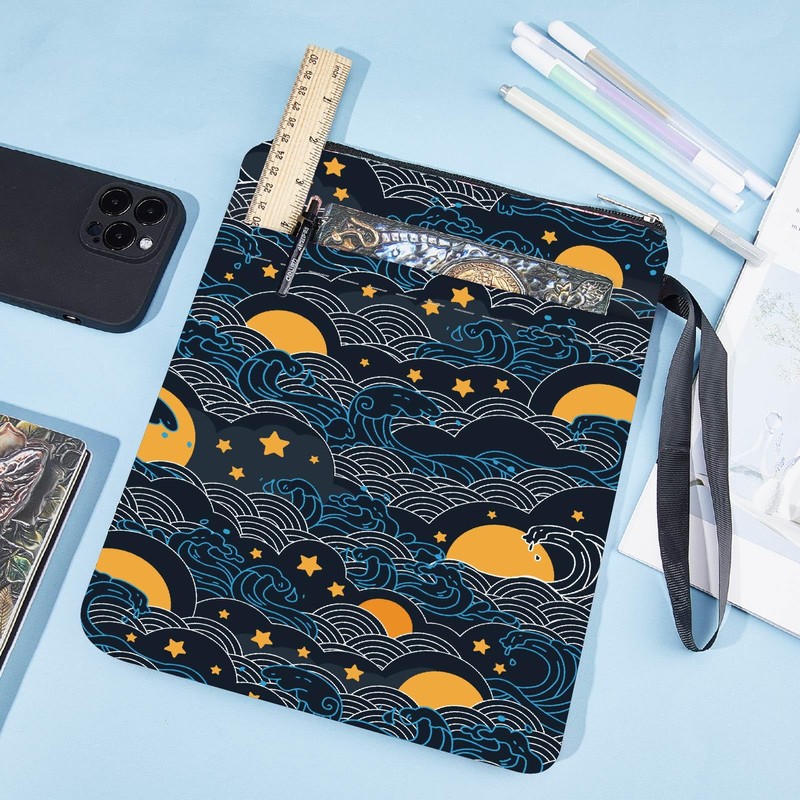 CRASPIRE Wave Book Cover, Star Book Protector, Moon Book Covers for Paperback, Washable Fabric Book Cover with Zipper and Additional Sleeve Pocket for Book Lovers, Gifts for Classmates