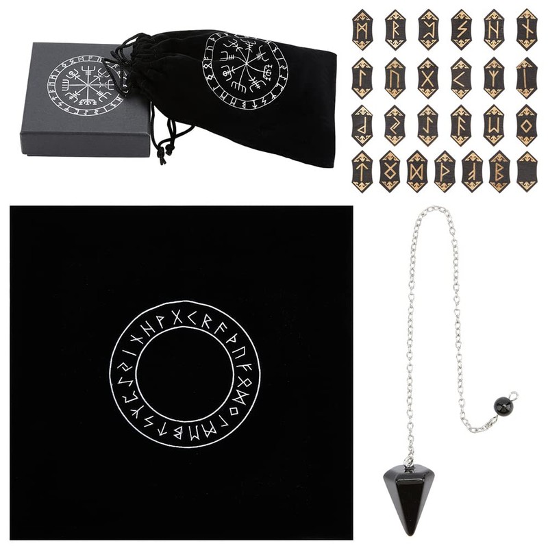 - Package Includes: 24pcs carved wooden runes sets and plus 1pc blank rune, 1pc crystal stones and 1pc altar cloth, and a velvet rune bag and comes in an exquisite box.