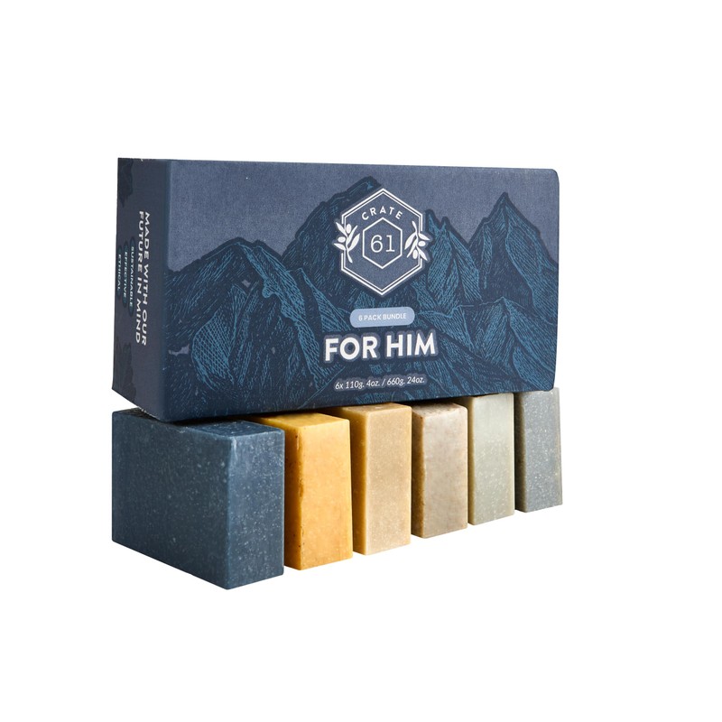 Crate 61 Organics Crate 61, Vegan Natural Bar Soap, Handmade Soap With Premium Essential Oils, Cold Pressed Face And Body Bar Soap For Men And Women 6 Pack (For Him)