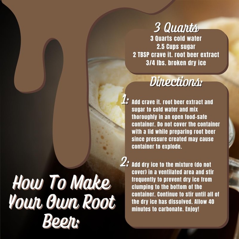 - EASY TO USE: With 4 simple ingredients you can have delicious homemade root beer in 15 minutes! Just mix, add dry ice, and stir! It is that easy!