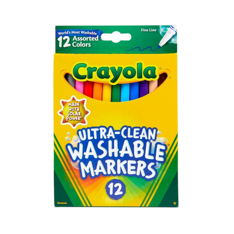 Crayola 12ct Fine Washable Markers. 12 Fine Line Markers. Washability.