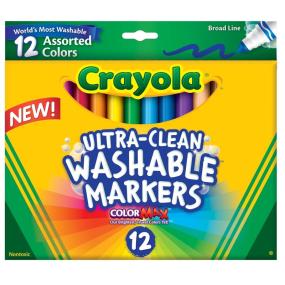 Classic assorted markers have a new Ultra-Clean washable formula which means they're easy to remove from skin, clothing, and now walls. This pack of 12 classic colors includes ColorMax, our brightest and truest colors yet. The ink stays put and won't smudge or soak through paper. The variety of colors gives kids plenty of options for exploring creativity or completing everyday projects.
