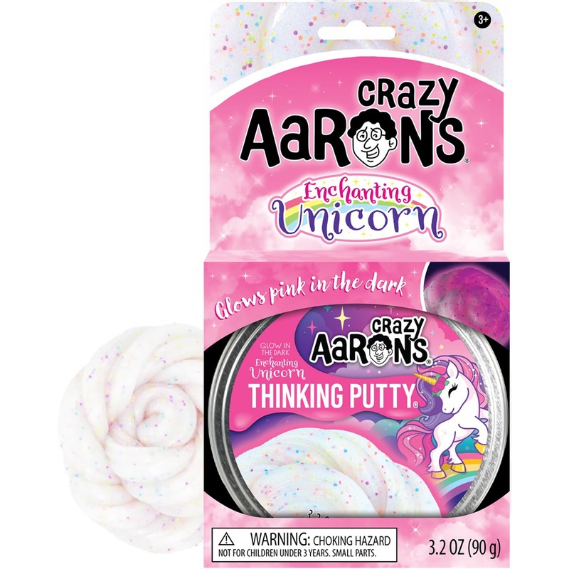 - Crazy Aaron's Thinking Putty Enchanting Unicorn Glows in the Dark, and includes fun neon rainbow speckles