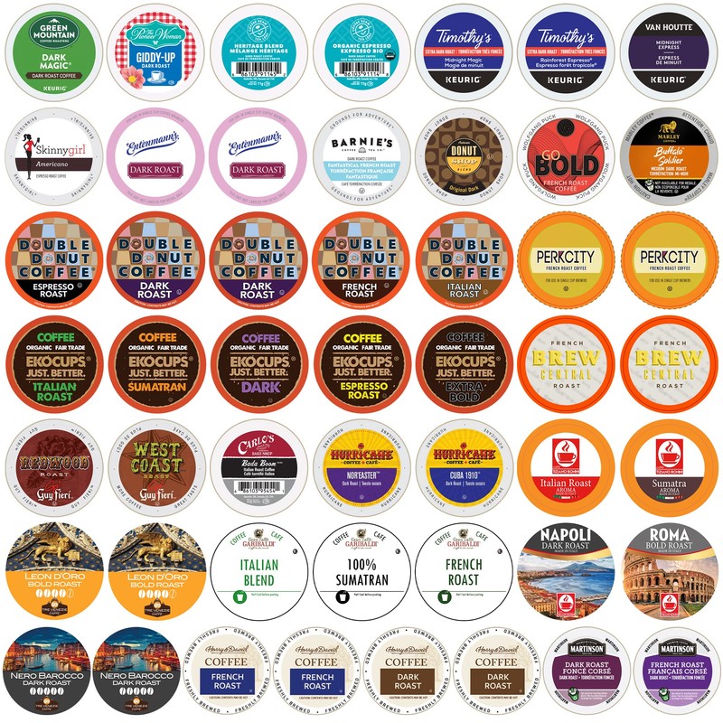 - BULK SIZE 50 POD PACK OF DARK ROAST COFFEE - Huge Variety of Different Dark Roast Styles and Blends from the Top Brands in the Coffee Industry, Including Pioneer Woman, Double Donut, EkoCups, Hurricane, Marley Coffee, Cake Boss, Skinnygirl, and More