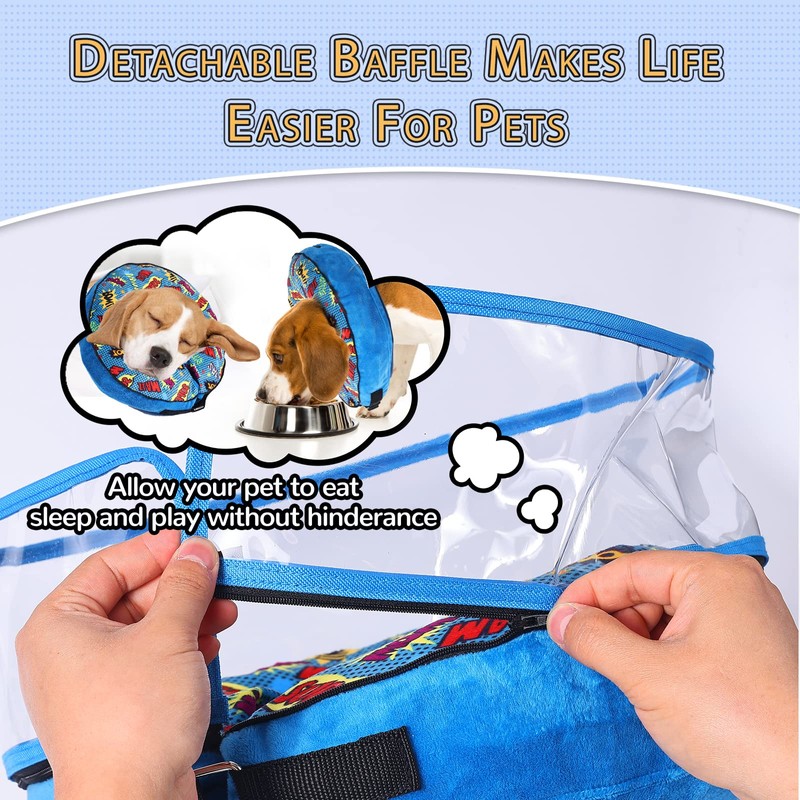• Detachable Anti-Licking Baffle-Unlike normal dog donut cone collar, this innovative baffle of the inflatable cone for dogs after surgery is detachable, which means that your furry friend can eat and drink without removing the entire dog recovery cone. This feature makes it much easier for you to take care of your dog's basic needs when they are recovering from an injury or surgery.