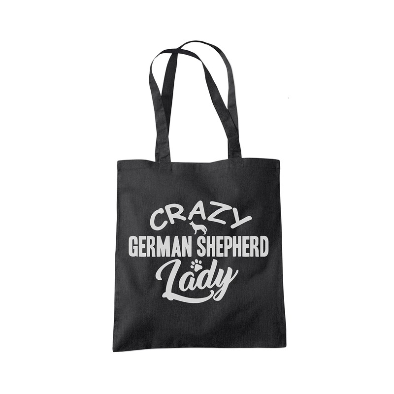 Crazy German Shepherd Lady Tote Bag - black One Size