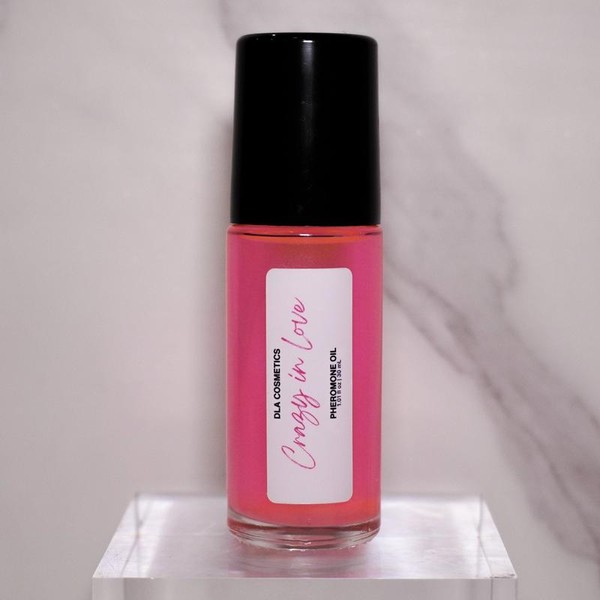 DLA COSMETICS Crazy in Love Pheromone Oil (Roll-On, 10mL/30mL) Description:Crazy in Love Pheromone Oil is a viral sensation and fan-favorite fragrance designed to enchant and captivate. Loved by thousands for its irresistible blend of fruity and floral notes, this signature roll-on oil exudes charm and allure, creating an unforgettable impression wherever you go. Key Fragrance Notes: • Peach: Luscious and ripe, evoking warmth and vitality. • Apple: Crisp and playful, delivering a youthful and energetic charm. • Jasmine: Elegant and timeless, adding sophistication and depth. • Lily of the Valley: Light and delicate, enhancing the fresh floral profile. • Tuberose: Creamy and opulent, bringing richness and allure. • Ylang Ylang: Exotic and floral, infusing a romantic and dreamy essence. • Musk: Sensual and grounding, leaving a lingering, seductive warmth. Fresh Floral Quality:This captivating roll-on oil balances fruity freshness and floral elegance, while musky undertones add depth and sensuality. The result is a fragrance that’s playful, sophisticated, and uniquely unforgettable. Sizes Available: • 10mL / 0.33oz: Compact and travel-friendly, perfect for touch-ups on the go. • 30mL / 1oz: Ideal for daily use with a longer-lasting supply. Overall Impression:Crazy in Love Pheromone Oil has become a viral favorite for its enchanting aroma that perfectly balances sweetness, sophistication, and sensuality. Perfect for everyday use or special occasions, this roll-on fragrance oil is your ultimate weapon for confidence and allure. Dare to captivate. Dare to be Crazy in Love.