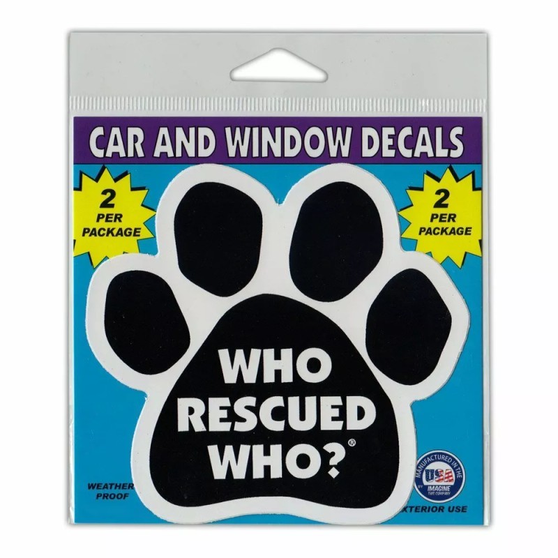 Crazy Novelty Guy Window Decals, 2-Pack, Who Rescued Who? (Black Dog/Cat Paw), 4.25" x 4" Stickers