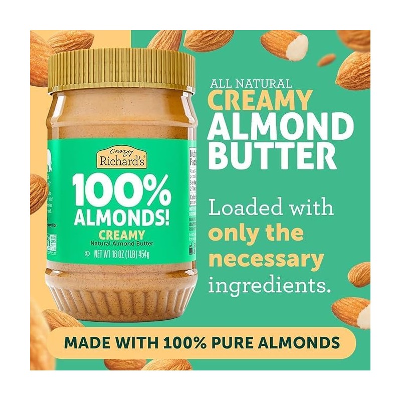Crazy Richard's 100% All-Natural Creamy Dry Roasted Almond Butter with No Added Sugar and Non-GMO (16 Ounce, Pack of 2)