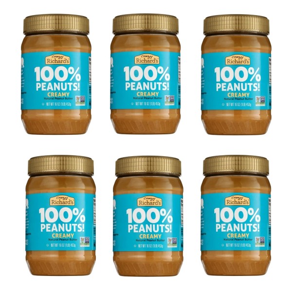 Crazy Richard’s 6 Pack Crazy Richard's All-Natural Creamy Peanut Butter 16 oz Jars Shelf-Stable