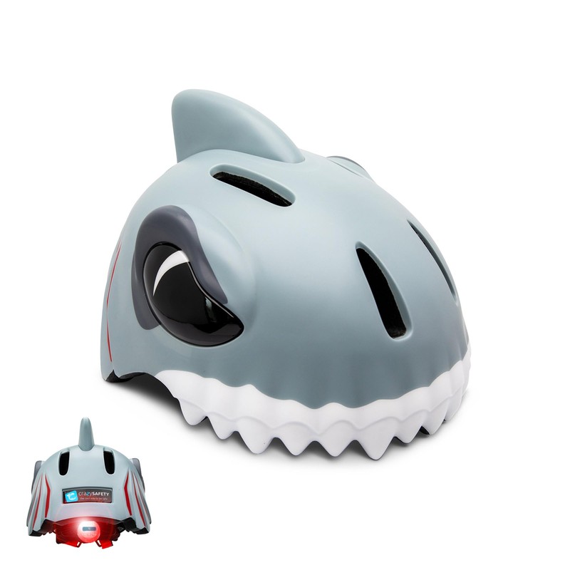 Crazy Safety Grey Shark Kids Bike Helmet | Cycle helmet for children aged 2-7 years for bikes, skateboards, balance bikes, scooters, skates Lightweight and adjustable 3D animal helmet 49-55 cm