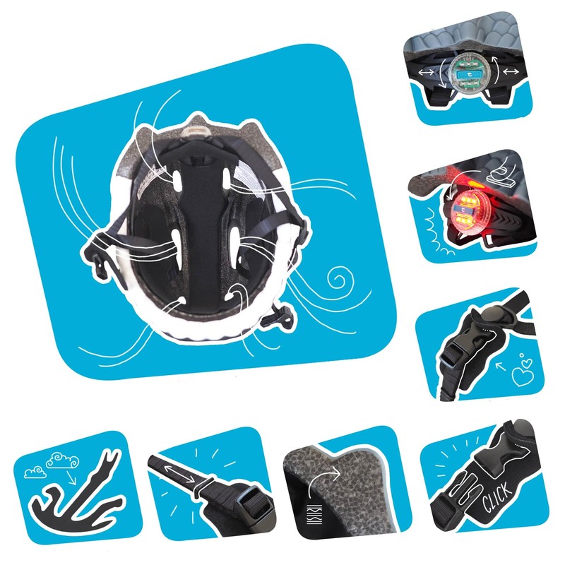 - IN-MOULD – This kids bike helmet is made of a helmet shell and shaping hard foam, welded together. This process creates a one-piece safety helmet, with a stable structure to absorb shocks and falls.