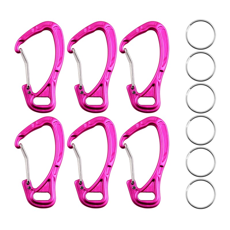 CRAZY SHARK 6PCS Fishing Aluminum Alloy Carabiner Keychain Outdoor Camping Climbing Snap Clip Lock Buckle Hook Fishing Tool(Pink)
