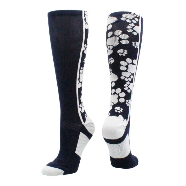 Crazy Socks with Paws Over the Calf (Navy/White, Large)