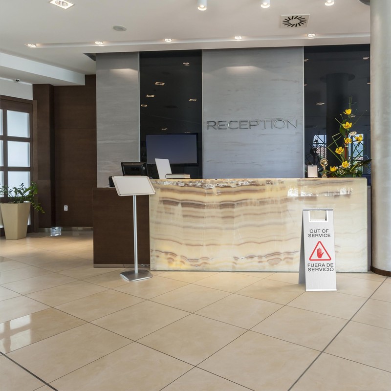 - Double-Sided Bilingual Warning – Boosts Safety Awareness Features clear “Out of Service” and “FUERA DE SERVICIO” text on both sides, along with a universal falling icon. Provides instant visual alerts to help prevent slip-and-fall incidents in multilingual environments