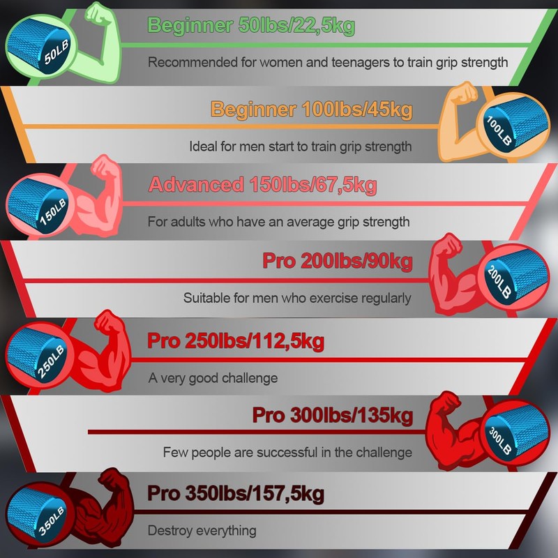 - 7 resistance types to choose from: CRAZYROPE offers 50 100 150 200 250 300 350 lbs handles that strengthen your forearm and grip. Our handles are the perfect way to build hand strength and improve your grip. As your hands get stronger, you will be able to lift heavier weights.