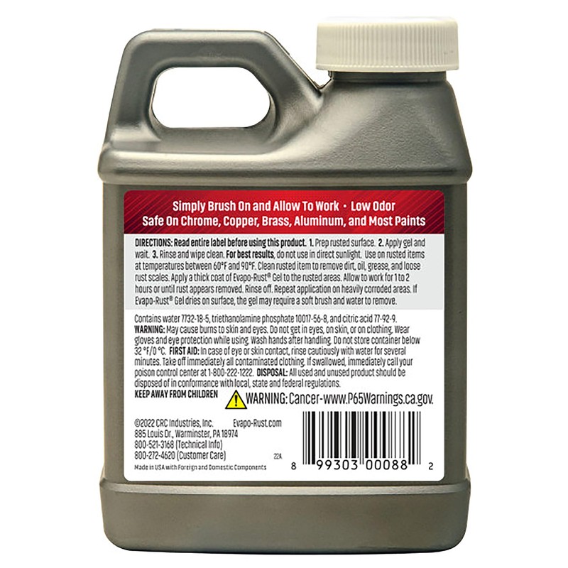 CRC Evapo-Rust Gel Rust Remover, 8 Fl Oz, Rust Remover for Vertical Surfaces, Eliminates Oxides from Aluminum, Cast Iron, and Steel