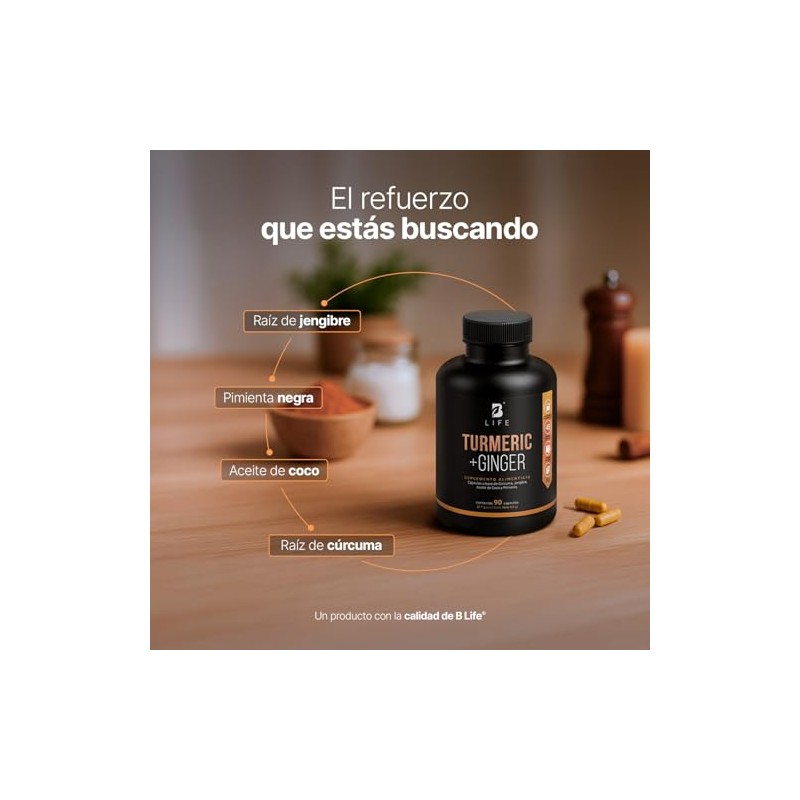 B Life Company - Cúrcuma + Jengibre 90 Cápsulas 1400 mg por porción. Adicionado con Aceite de Coco. Ingredientes naturales. Turmeric + Ginger B Life. 🚀 Producto más vendido con miles de clientes satisfechos. Tecnología avanzada y rendimiento superior. ⭐ Miles de reseñas positivas. Ideal para quienes buscan lo mejor en calidad y estilo. Producto auténtico con satisfacción total asegurada. ¡No te quedes sin el tuyo y aprovecha esta oportunidad única!
