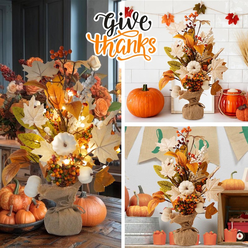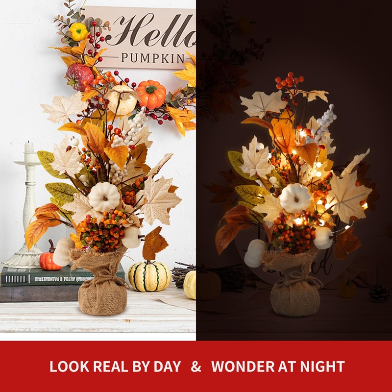 CRCZK Fall Maple Leaf Table Tree Decoration Pumpkin Artificial Tree Decorations for Autumn Party Holiday Home Decor