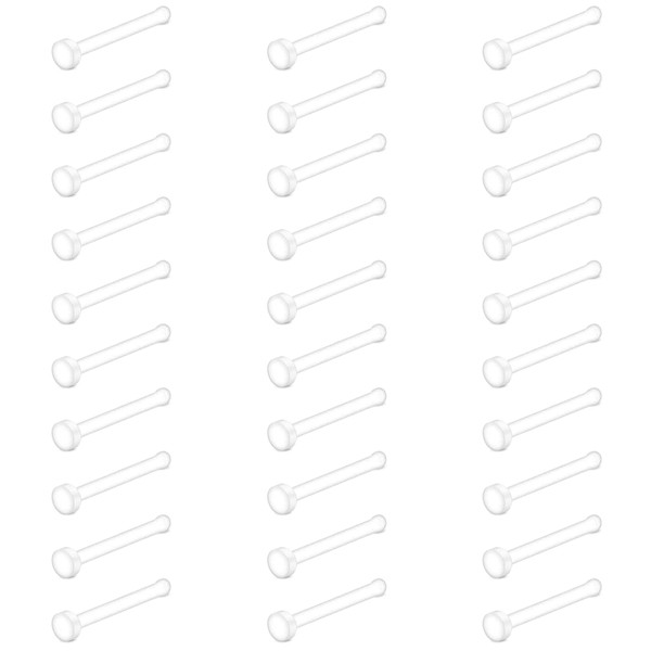 Crdifu 30pcs Clear Nose Studs 20g Flat Top Invisible Screw L Shaped Nose Piercing for Work School Plastic, Plastic