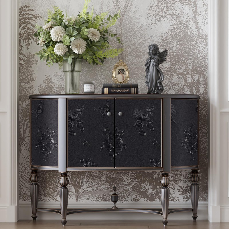 CRE8TIVE 12"x354" Floral Peel and Stick Black Wallpaper - Embossed Silk Gothic Self Adhesive Contact Paper, Waterproof Removable Textured for Bedroom Drawers Wall Covering