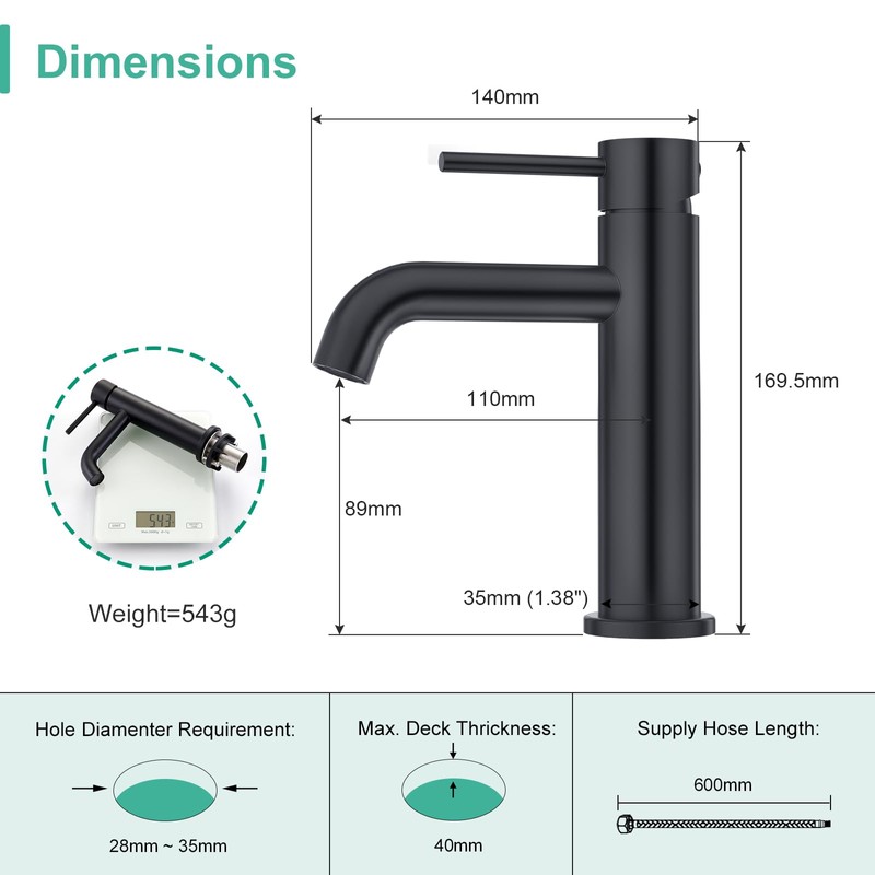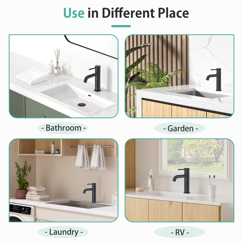 - Elegant appearance and high-quality workmanship: The whole bathroom tap is made of SUS304 stainless steel (lead-free and rustproof). The electrophoresis black with chrome-plated precision surface coating looks very elegant and fits very well with the bathroom. Easy-to-clean black surface for years to be permanently bright as new.