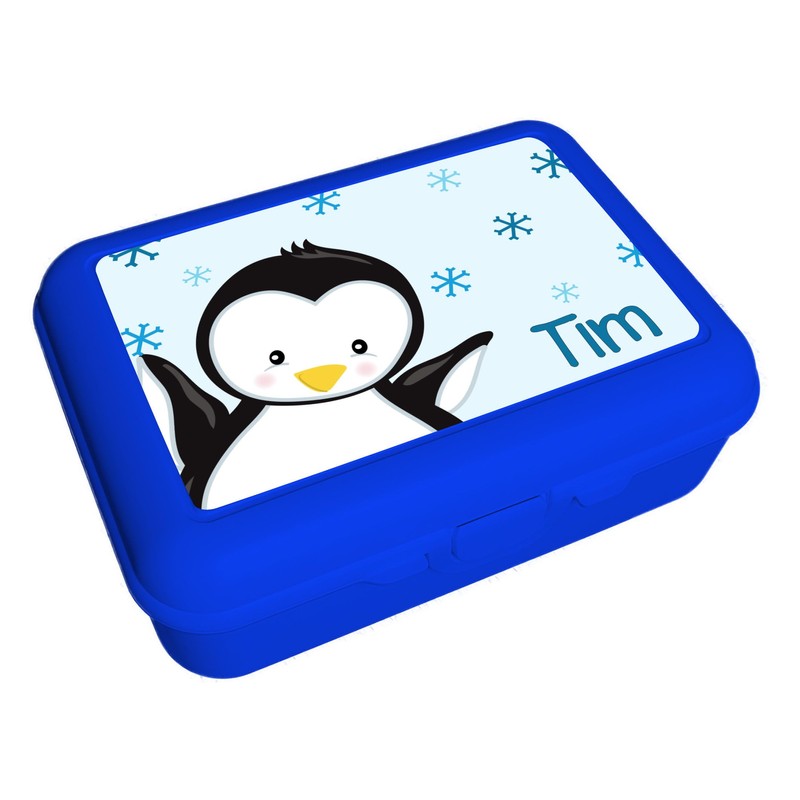 CreaDesign, Children's Lunch Box, Lunch Box, Blue with Compartments, Ideal for Nursery, Nursery and School, Penguin Light Blue, 13.9 x 19 x 7 cm, Volume 1 Litre