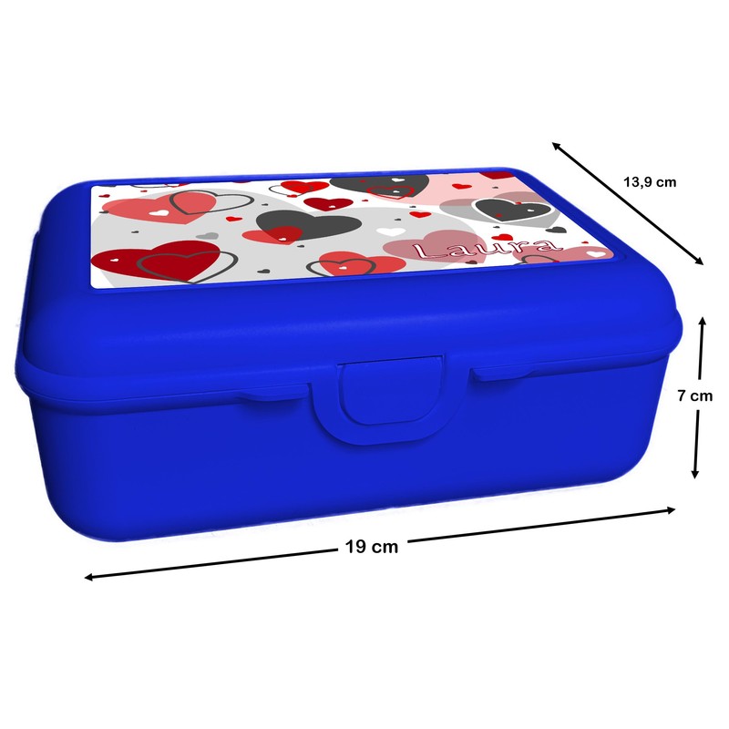 CreaDesign, Children's lunch box, lunch box, blue with compartments insert, ideal for nursery, nursery and school, heart red grey, 13.9 x 19 x 7 cm, volume 1 litre