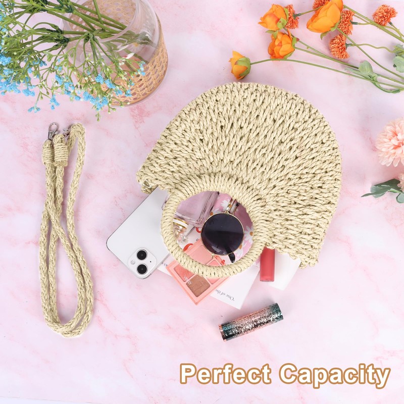 - Fashion Straw Beach Bag:Round handle and straw shoulder strap design, handheld and shoulder, whether you are shopping or traveling, can be your right hand.