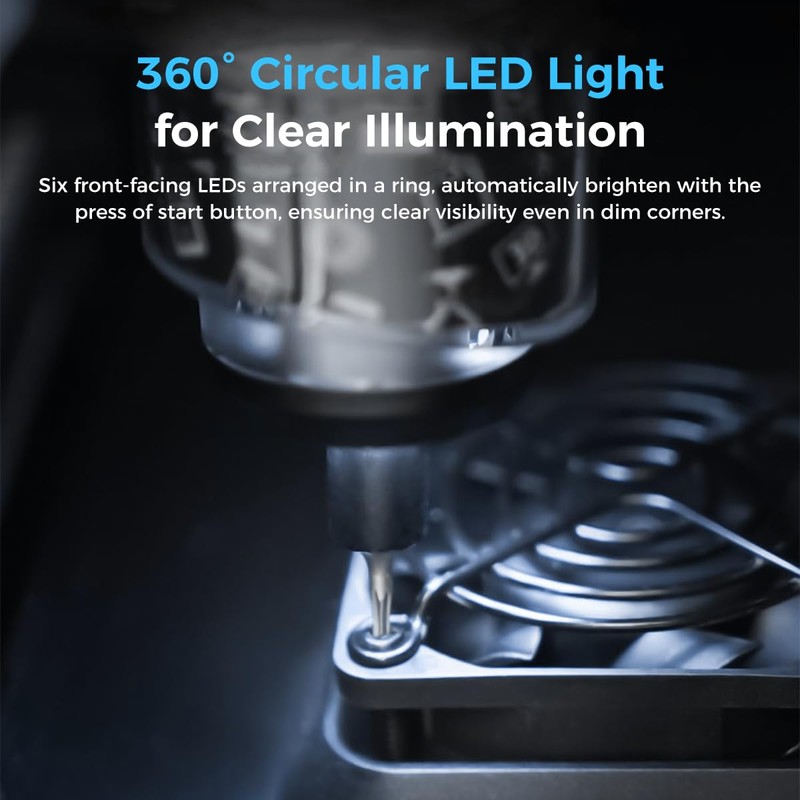 - 【Simple to Use】Forward/Reserve Control allows you to either screw or replace/remove bits on your purposes. Six front-facing LEDs arranged in a ring, automatically brighten with the press of a button, ensuring clear visibility even in dim corners