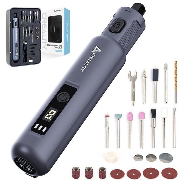 - 【Creality Multi-Purpose Cordless Rotary Tool Kit】Effortlessly tackle grinding, polishing, drilling, and multi-material cutting for flawless 3D print post-processing and DIY projects.