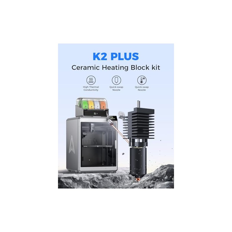 - Official Guarantee: 100% official and original packaging. Creality K2 Plus Ceramic Heating Block Kit is an all-metal integrated design, facilitating quick disassembly and convenient replacement.
