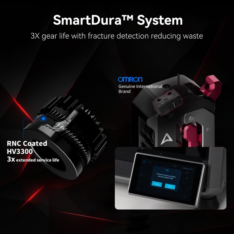 - 【Open Cooling Architecture & RNC-Coated Gears】: An enhanced airflow system improves heat dissipation and reduces the risk of clogs during long prints. RNC ultra-wear-resistant gears offer 3x longer lifespan (HV3300 hardness), built to handle abrasive filaments like CF and PC without breaking a sweat.