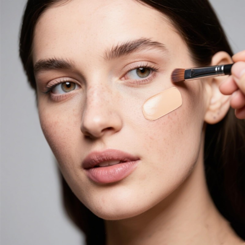 2.Once on the skin,use your finger or a brush to blend out,building coverage as you desire.