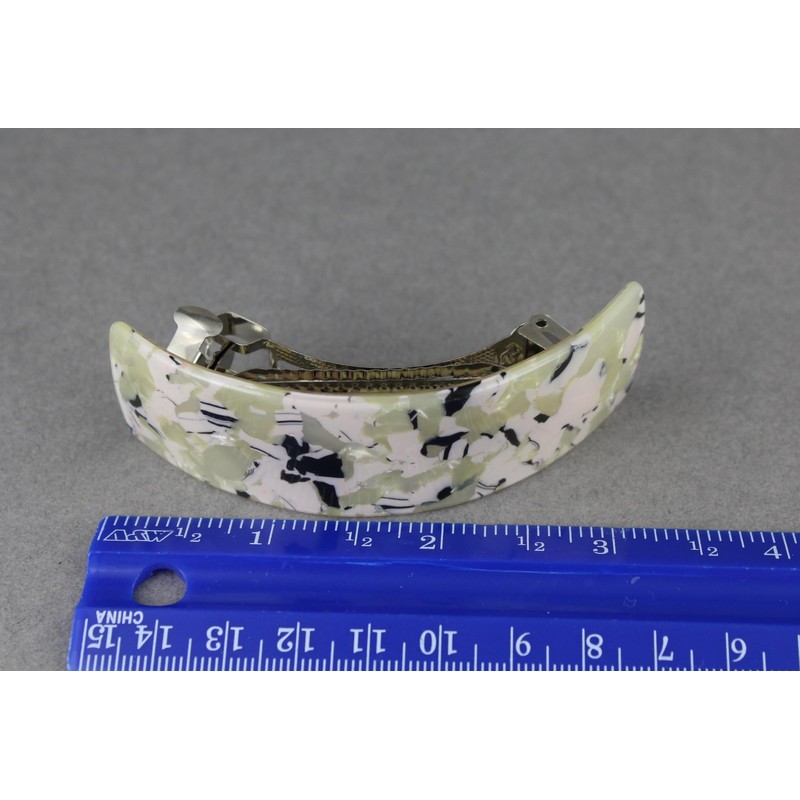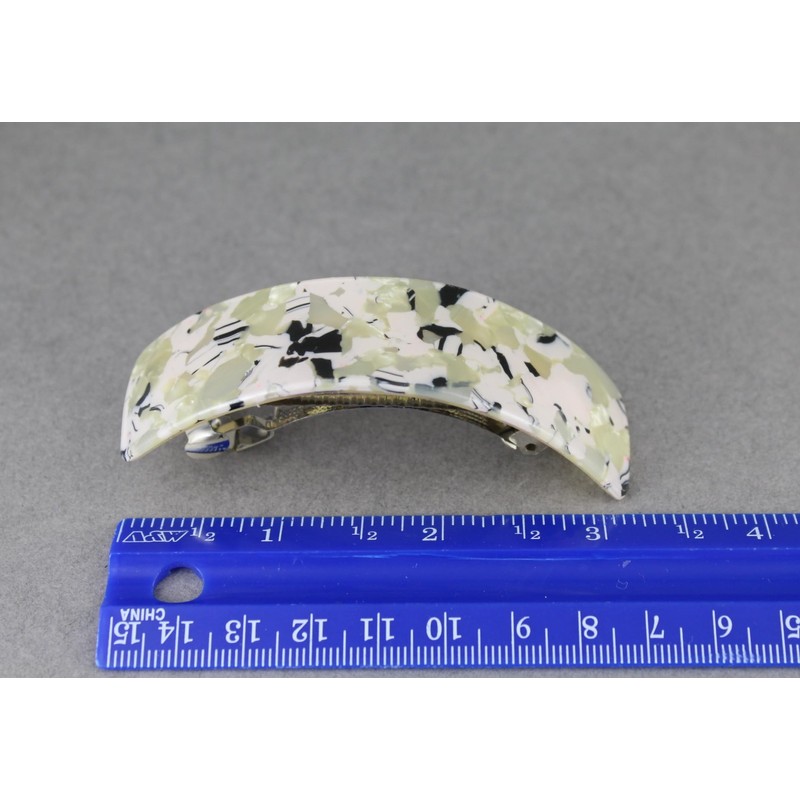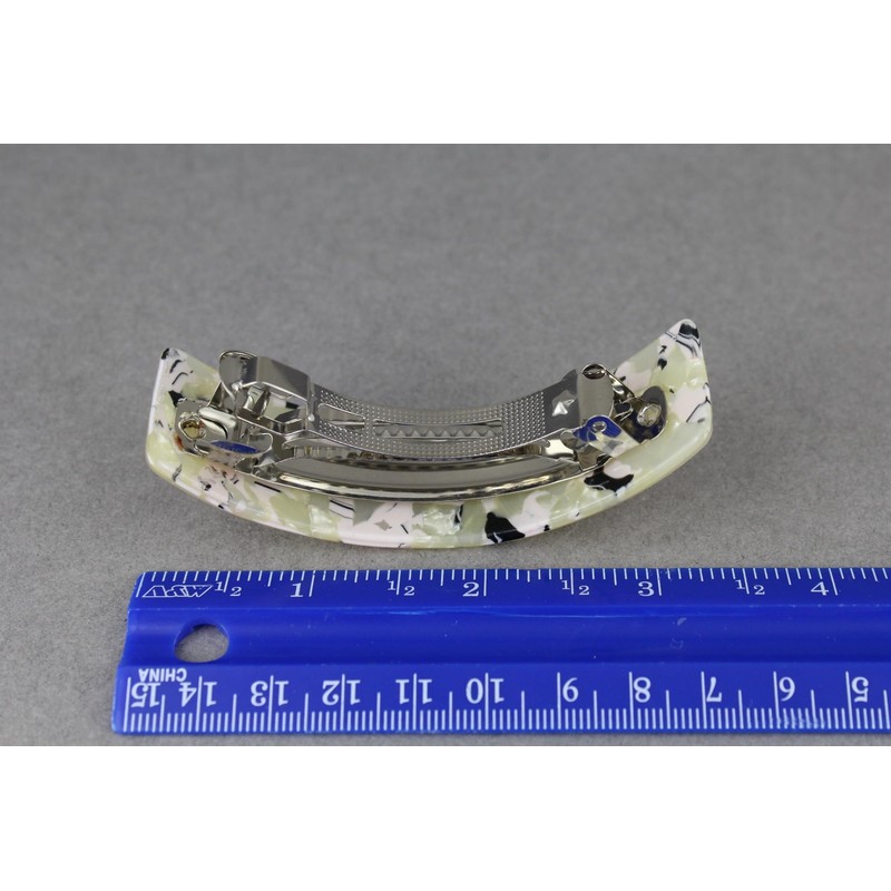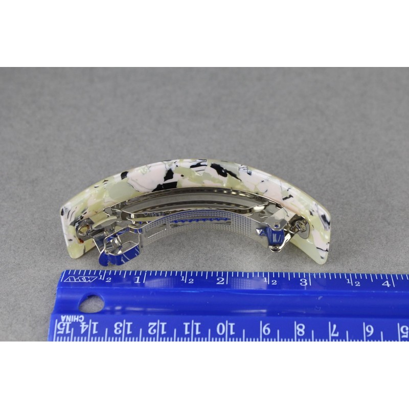 Cream Grey Black barrette plastic marbled rectangle hair clip accessory 3.75 inches long over the curve