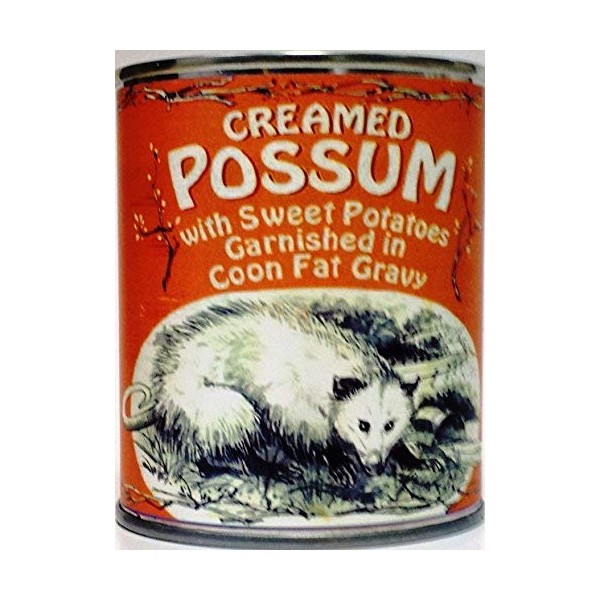 Creamed Possum in Coon Fat Gravy Garnished with Sweet Potatoes (Gag Can)