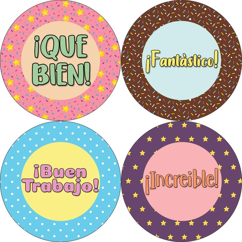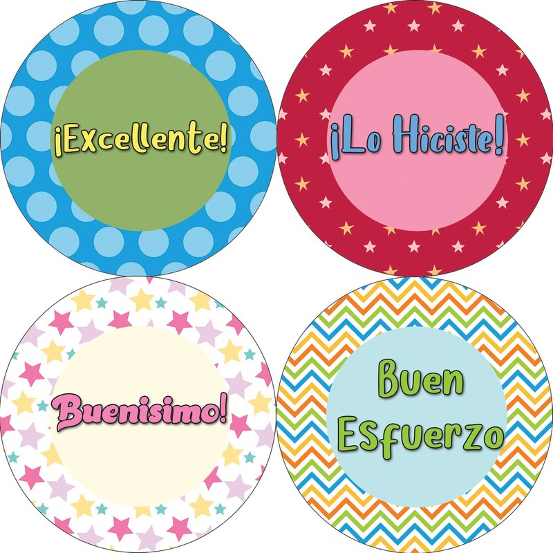 • 16 UNIQUE DESIGNS ROUND STICKERS FOR YOUR DIY PERSONALIZED DECORATIONS - Spanish Confetti Reward Stickers - 5 Sheet. These colorful & uniquely inspiring Spanish Confetti Reward Stickers stickers are the best tool for DIY decoration & personalization of your belongings.