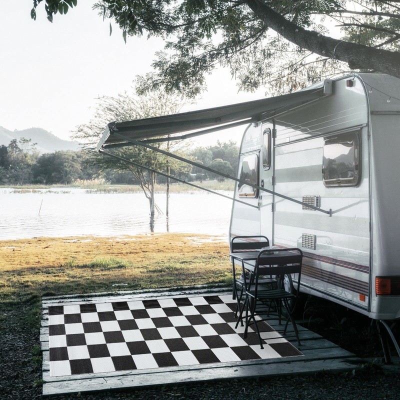 Crease-Free Reversible Indoor/Outdoor Recycled Plastic Mat/Rug - Weather, Water, Stain, Fade and UV Resistant - California- Black & White (4'x6')