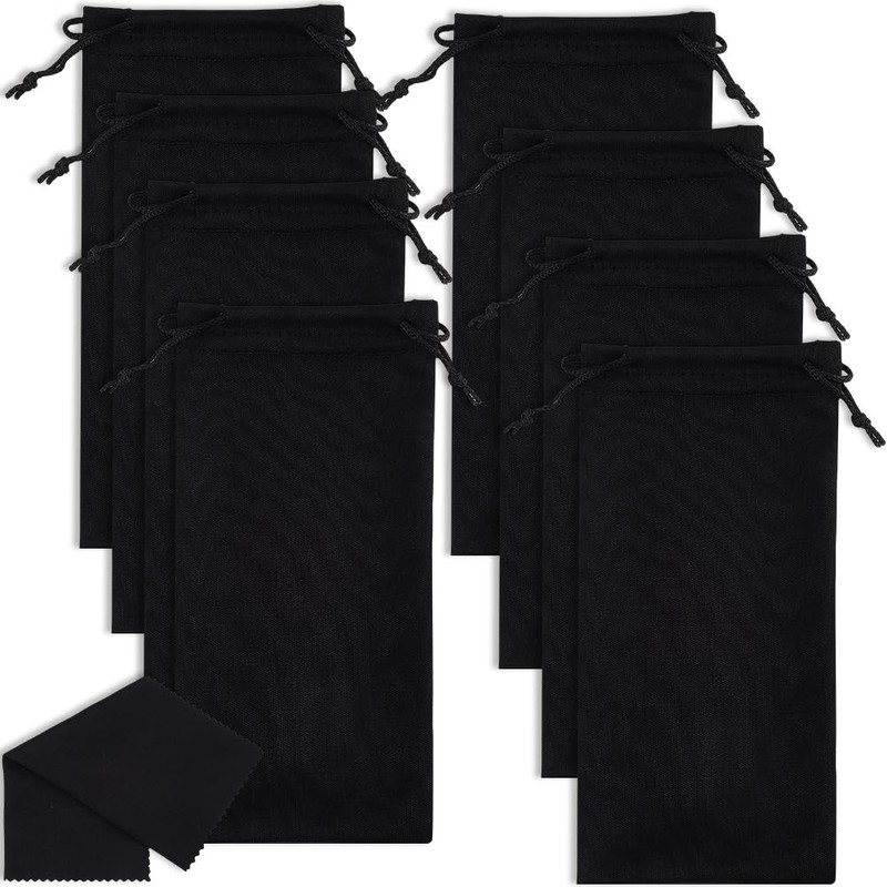 - 8 Pcs Set: You will get 8 pcs of microfiber glasses pouch black and 2 pcs eyeglass cleaning cloth, which is enough for your daily use. And also suitable for cinema,store or shop to help keep the small things like phone, earring, watch for customer