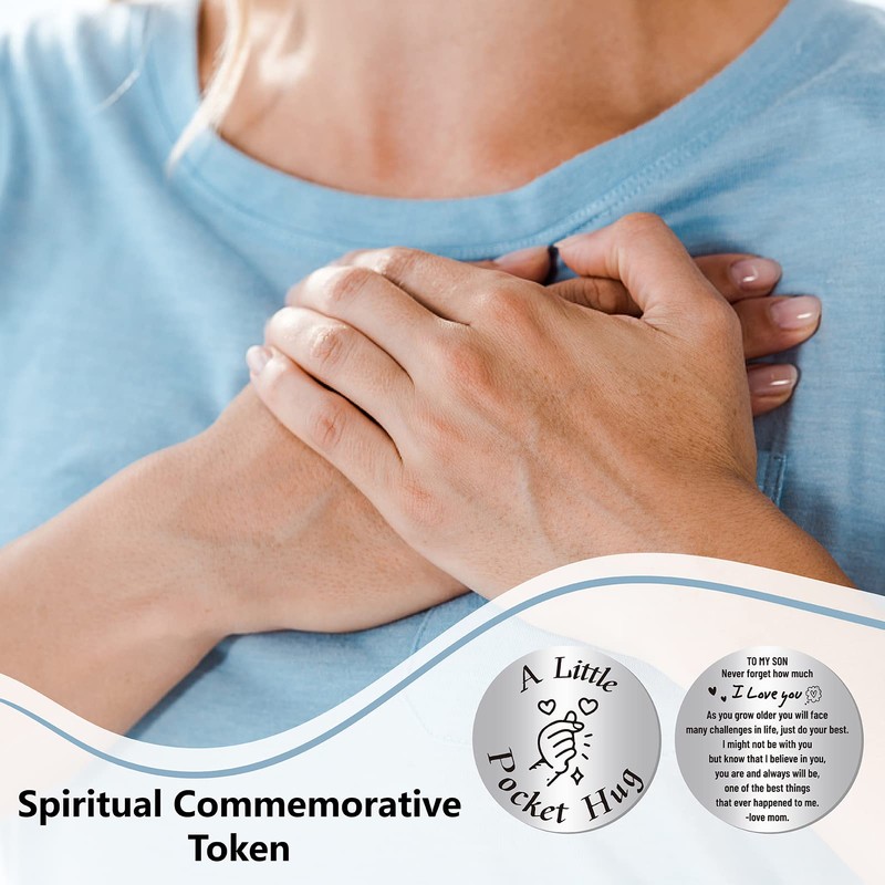 - [POCKET HUG TOKEN]: The stainless steel token has a double-sided design with different warm sentences printed on the back, which can express your love and care for your loved ones and encourage them.