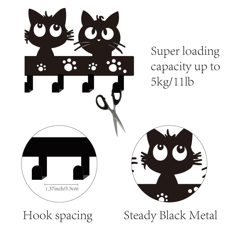 - Metal Cat Key Holder: The key holder for wall designed with cute cats shape and pet paw pattern, cute and eye-catching, can create extra space for your home, keep your items organized, suitable for people who like pets