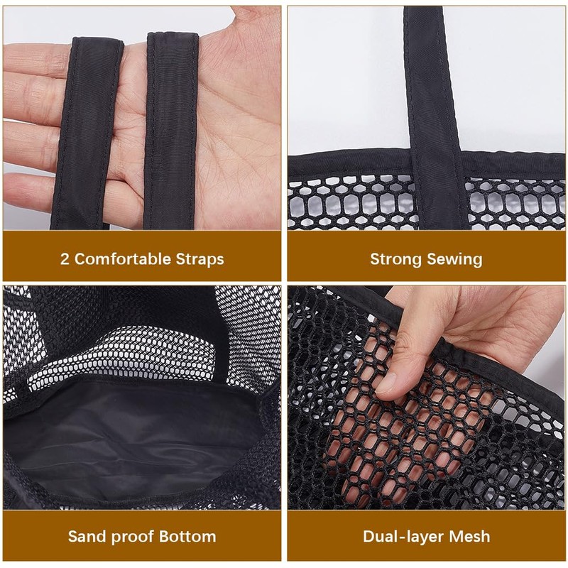 - Foldable Mesh Beach Bag:Foldable into a compact bag,very lightweight,foldable and tucked into the corner of the luggage compartment,equipped with adjustable shoulder straps,can free up hands,easy to carry for travel and vacation,without any burden.