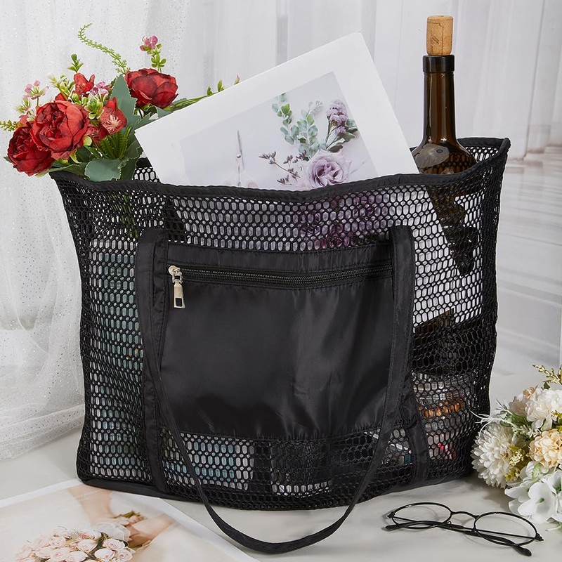 - Multi-Purpose Features:Mesh beach tote with anti-theft zipper and pocket,anti rust zipper anti-theft design,functional zoning,suitable for family outings or gatherings with girlfriends.