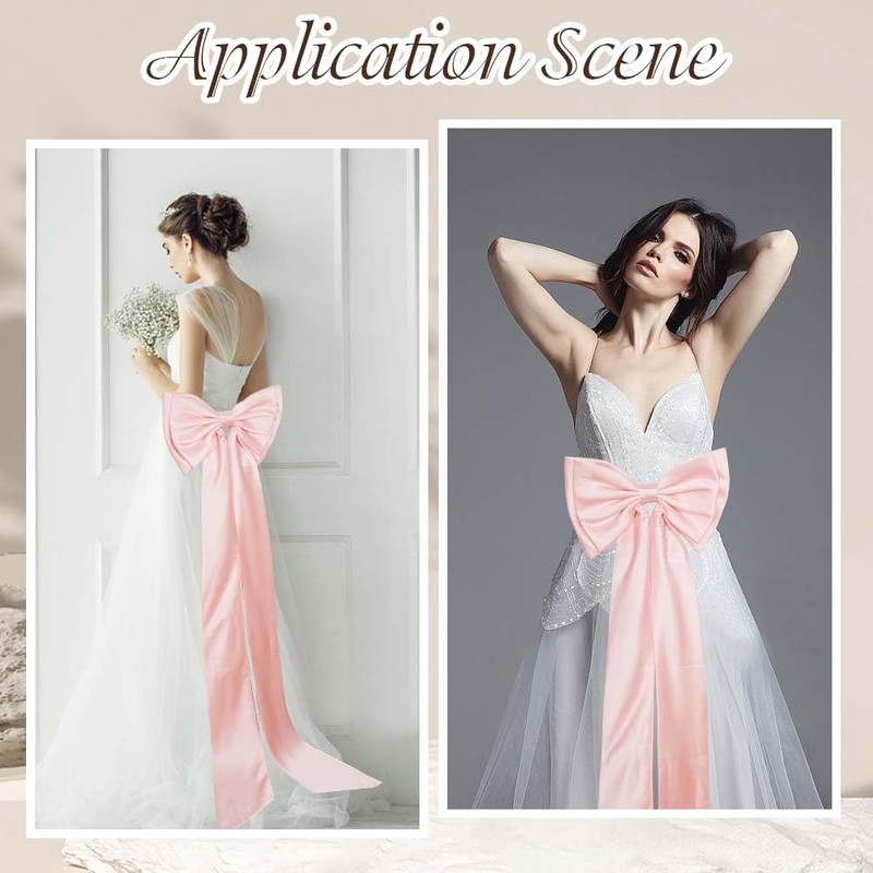 - Big Pink Satin Bow: The highlight of this accessory is the large and eye-catching satin bow. The bow is located at the rear of the train and is a charming focal point, attracting people's attention to your impeccable style. It adds a touch of romance and femininity to your overall look. Suitable for wedding and perform