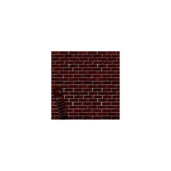 - Depicts a dark red brick wall