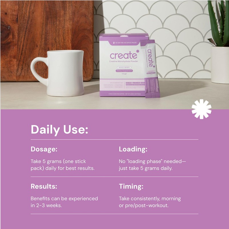 - Experience next-level strength and endurance. With 5g of the world's purest creatine in every stick, Create powers your workouts and daily performance like never before.