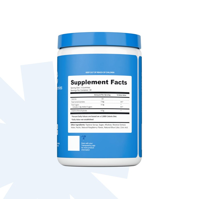 - CONVENIENT & DELICIOUS: Say goodbye to messy powders and bland supplements. Our refreshing blue raspberry flavor makes every gummy an indulgence. With 1.5g creatine per gummy, enjoy ultimate convenience and performance benefits in every bite.
