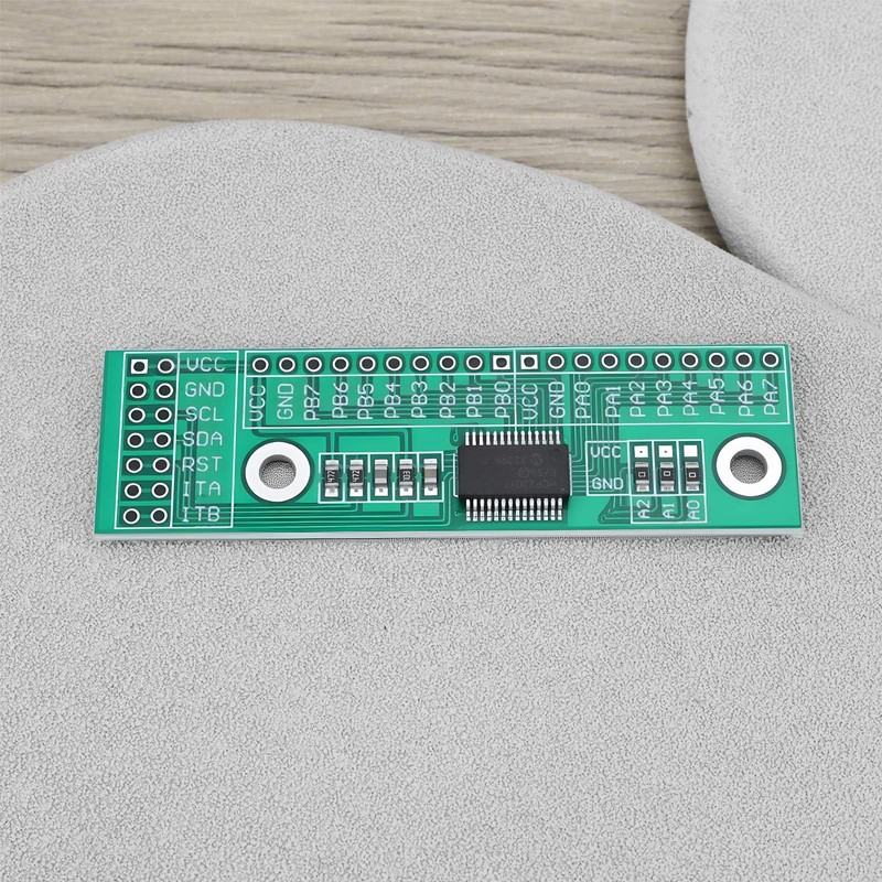 - The chip has three address pins and can set eight different addresses. Thus, eight modules can be connected via two IIC buses to achieve up to 128 IO expansions.
